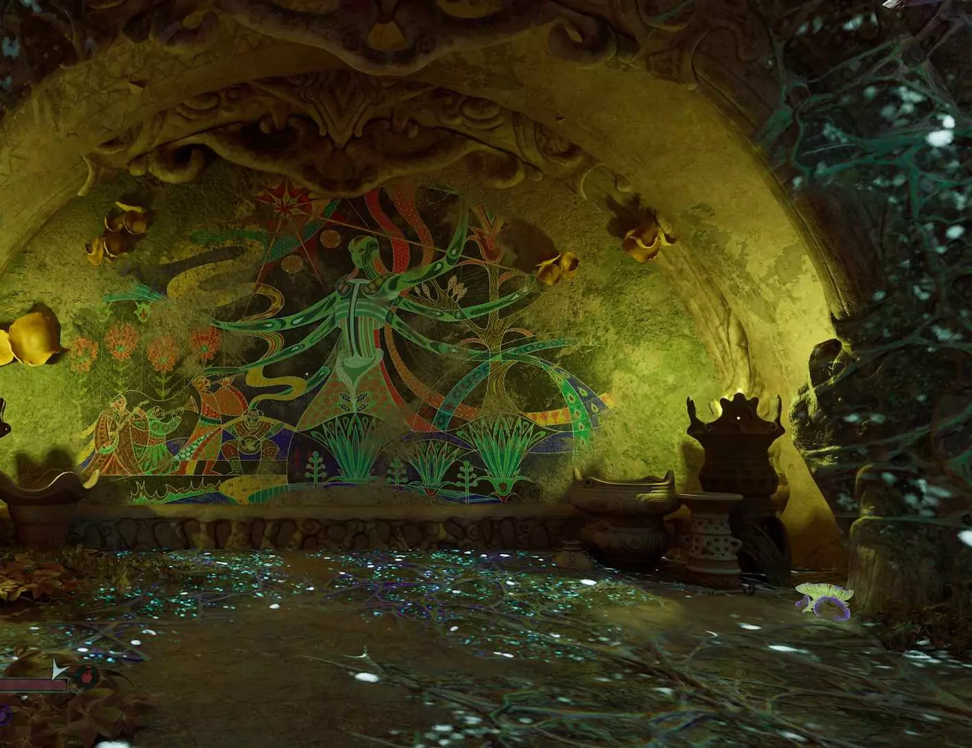 Upravo ta estetika odvaja Avowed od standardnih RPG okruženja. Umjesto generičnih mračnih tamnica i ruševnih tvrđava, ovdje ćete nailaziti na strukture isprepletene gljivičnim korijenjem, kristalne formacije koje zrače vlastitim životom i pećine u kojima se zidovi pomjeraju kao da dišu.