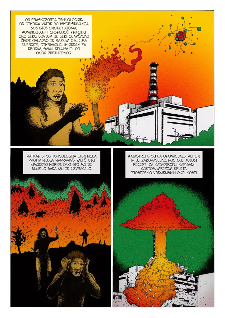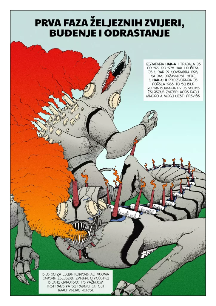 Neki od samostalnih crteža iz te faze ponovnog upoznavanja sa olovkom, tušem i papirom je privuklo Sašinu pažnju, pa smo napravili saradnju na njegovim romanima Električni Okean i U Čarobnjakovim Šeširima, te napravili jedan kratki strip. Bilo je ideja da radimo i neku kolekciju kratkih stripova, ali onda nam je uletila tezga za Front Slobode iz Tuzle, za koje uskoro izlazi naš treći strip. To su priče o raspadu socijalističke industrije i traljavoj tranziciji u kapitalizam, zbog koje sad širom države imamo ekološke probleme, čak i potencijalne ekološke bombe poput HAK-a Tuzli.