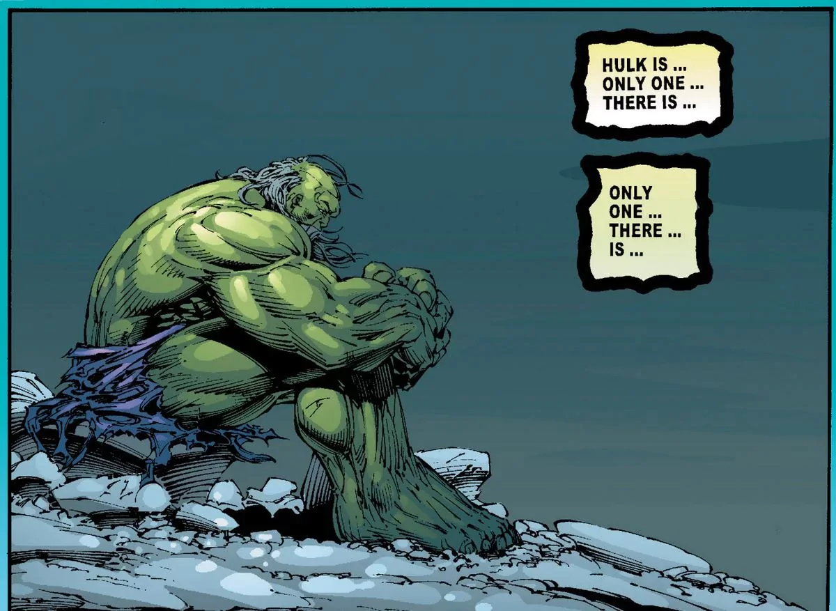 Glavni fokus je, međutim, na toj različitosti Bannera i Hulka, na njihovoj i nakon toliko godina razdvojenosti. Iako su jedno tijelo, ipak su dva različita bića. I to je ono što im zadaje jpš veći razdor. Banner želi umrijeti, Hulk ne. Banner ga moli da samo pusti da se to jednostavno dogodi, jer kada umru pridružit će se ostalim mrtvim prijateljima gdje će biti sretni ponovo. Hulk ubjedljivo odbija ovu ideju, jer u njegovim mislima on nikada nije imao prijatelja, oni su ga uvijek izdavali. Ovo je od početka do kraja borba volje za životom i volje za smrću. Na kraju, u blistavom melanoličnom kadru Hulka ispred pećine, možemo reći da su pobjedu odnijele obje te volje. Ali, pod koju cijenu?